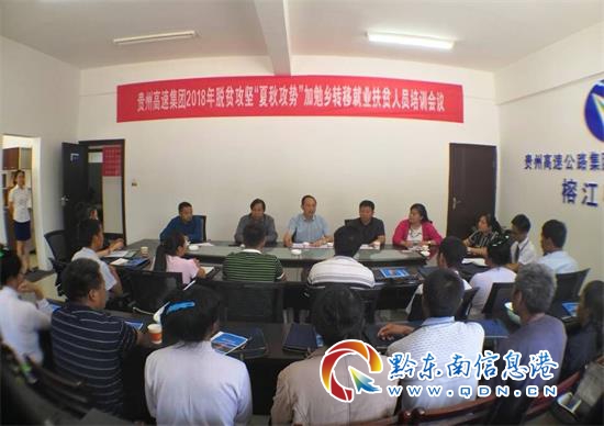 本网讯 9月9日,贵州高速集团2018年转移就业人员培训班在凯里营运中心榕江收费站举行,贵州交通运输厅党委副书记、机关党委书记李程,贵州高速集团党委委员、副总经理旷光洪,贵州高速集团脱贫攻坚队常务副队长、凯里营运管理中心党委书记、副主任邓婷蓝出席培训会现场,并做重要讲话。