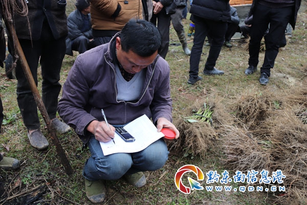 “今天我领得了2860株钩藤苗,非常高兴,我那13亩荒坡有用了”,小丑村村民董老九高兴地说。”