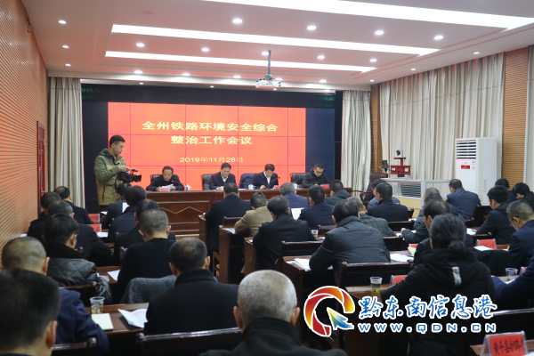 会上,州委政法委正县长级干部、州铁路护路办主任黄德忠同志传达学习了习近平总书记重要批示和韩正、郭声琨等中央领导同志批示精神,以及中央政法委召开的机构改革后完善铁路护路联防协调机制座谈会精神和全省高铁安全整治工作会议精神,并对全州铁路环境安全综合整治工作作了具体的安排部署,把次此高铁外部环境安全隐患整治工作延伸到我州境内普铁沿线安全隐患的集中排查整治,并将隐患综合整治的时间延迟至2020年元月10日,以期实现在2020年春运前,将红线内影响铁路运输安全的隐患全部“清零”,实现铁路外部环境安全形势得到根本好转。贵阳高铁工务段总会计师谢万权同志对我州铁路环境综合整治工作提出工作建议。