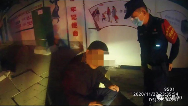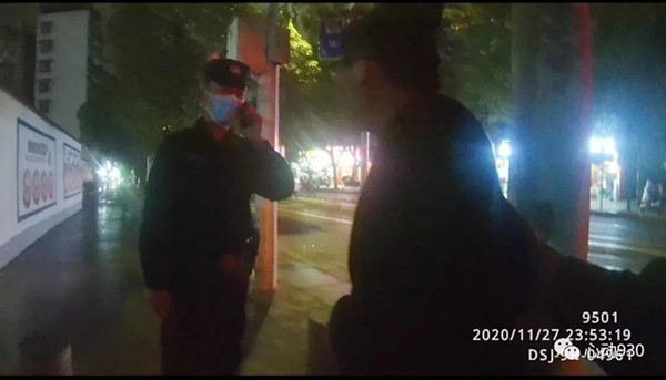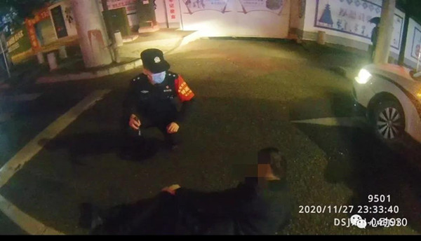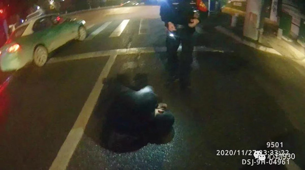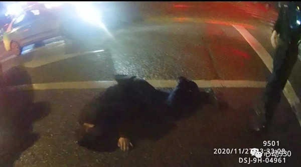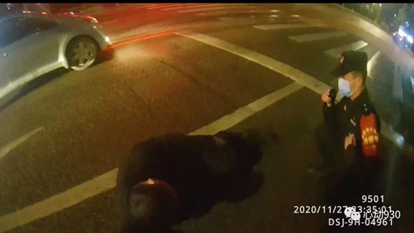 2020年11月27日23点32分许,凯里市公安局特巡警大队城西中队队员李鑫龙、扈鹏像往常一样,正在辖区开展治安巡逻,当他们巡逻至清平南路路段时,发现在川流不息的行车道的“正中间”躺了一个人。“当时那人的衣服、裤子都是黑色的,且整个身子蜷缩一团,如不近距离观察很容易当成一个大号黑色垃圾袋,且附近车速都很快,情况十分危险。”特巡警队员李鑫龙告诉记者。