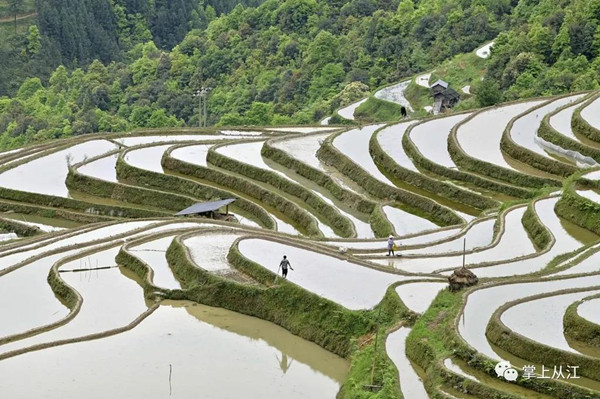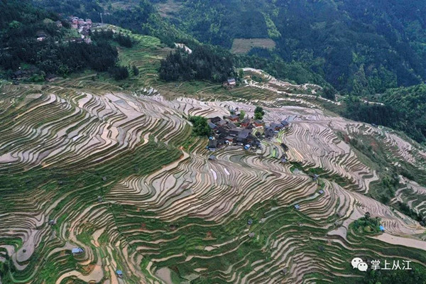 谷雨时节,位于从江县的加榜梯田蓄水丰盈,色彩斑斓,犹如一幅幅田园水墨画,吸引众多游客前来观光游览。(吴德军 摄影报道)