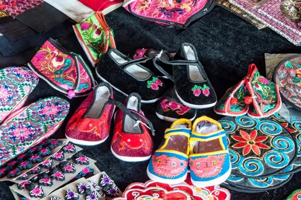 苗绣:苗族刺绣都是无图作业,艺从心生,种类多,工艺精,而且想象丰富,造型奇特,色彩艳丽。