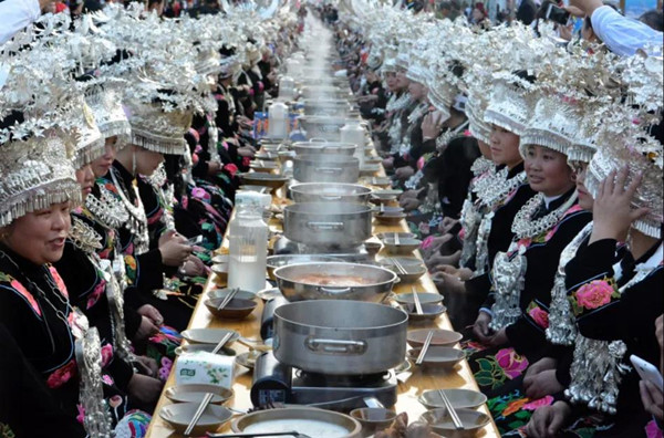 那么多美食是不是已经让你选的眼花缭乱,选择困难症高涨,待你尝尽各类小吃特产还可以去奔赴一场苗家长桌宴,感受苗族人民“高山流水”的情谊。