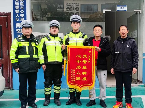 为表示谢意,文先生痊愈出院后,特意制作了一面锦旗送到凯里市公安局交警大队,于是便出现了文章开头的那一幕。(拍摄:铁骑中队,文稿:黄玉琴)