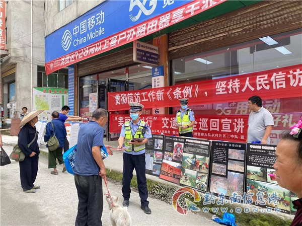 该大队组织警力利用少数民族节假日群众走亲访友出行特点,积极将交通安全宣传工作贯穿于执勤执法活动中,坚持教育和处罚相结合的原则,教育引导群众自觉增强法治意识、文明意识,摒弃交通陋习,做到安全文明出行;结合路面实际情况,在执勤执法中及时向过往车辆发放安全提示宣传资料,引导其自觉远离交通违法行为,同时,在每个赶集日联合多部门开展以“落实安全责任,推动安全发展”主题宣传活动,不断提升群众交通安全意识。