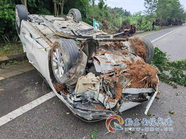 6月5日上午9时30分许,交警二大队接到群众报警称 :"在玉盘高速公路黄平往施秉方向距离施秉西收费站500米处发生交通事故,车辆四脚朝天。
