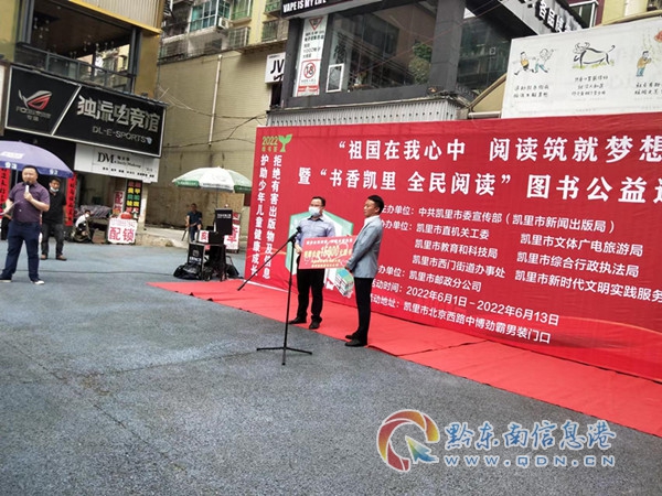 开展当天,凯里市邮政分公司举行了隆重的开展仪式,中共凯里市宣传部(凯里市新闻出版局)、凯里市机关工委、凯里市文体广电旅游局、凯里市教育和科技局、凯里市综合行政执法局、凯里市西门街道办事处、凯里市新时代文明实践服务中心相关领导及嘉宾出席了开展仪式。在仪式上,凯里市邮政分公司向中共凯里市委宣传部捐赠了价值15000元图书。
