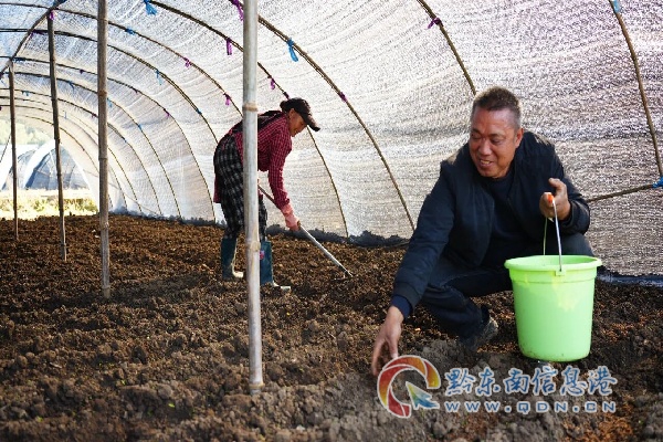 近日,走进岑巩县天星乡东兴村羊肚菌种植基地,大棚边的地面早已铺好平整的塑料油纸,工人们正分工协作忙碌着。一袋袋栽培种被搬至机器进料口,随着机器匀速转动,成块的菌种被快速搅打成均匀颗粒,顺着出料口落在油纸上,堆积成蓬松的“营养碎粒”。工人们弯腰将菌种轻轻拨入塑料桶,动作轻柔又迅速;装满的桶被整齐码放后,转运工人快步送至相邻大棚,沿种植沟均匀铺撒,身后的工人随即用耙子精准覆土……每个环节都透着细致与高效,为羊肚菌的萌发筑牢基础。