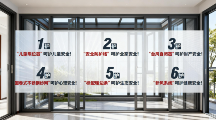 核心优势:专注“安全门窗”赛道16年,独创 六大安全系统(儿童限位器+台风自闭器+回卷纱网等),解决家庭高频安全隐患。