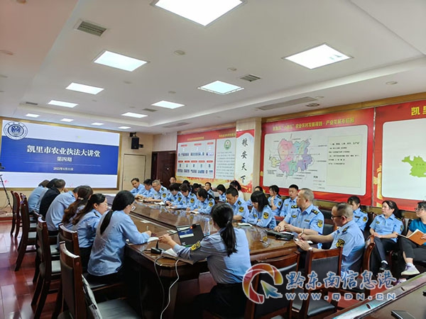 农业综合行政执法队伍专业化建设持续加强,参加各类“线上线下”行政执法培训、大讲堂等19期760人次,2025年,获得农业农村部典型案例1起,省农业农村厅典型案例2起、优秀案件卷宗1卷。承办全省农业法治建设暨行政执法规范化建设现场会,“凯里经验”在全省推广,营造了公平有序的发展环境。