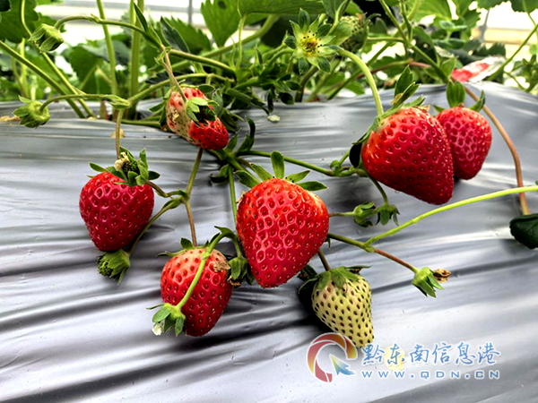 走进的舟溪大坝的贵州百孚实业集团有限公司温室草莓种植大棚,满目葱茏,绿意盎然,娇艳欲滴的草莓如宝石般点缀其间,温暖湿润的空气夹杂着馥郁的草莓香味扑面而来,让人垂涎欲滴。