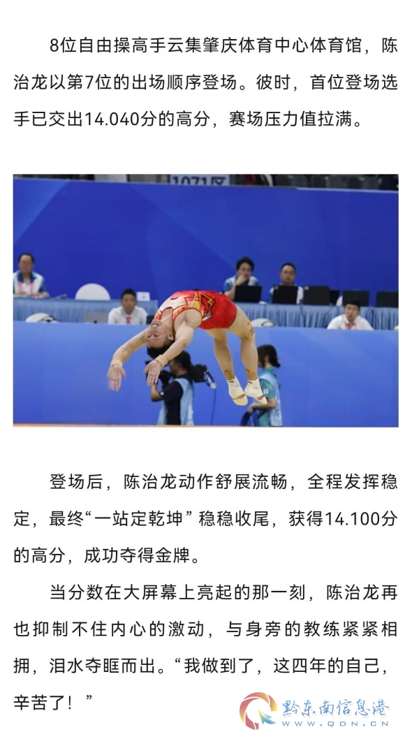 祝贺!黔东南榕江籍运动员陈治龙以14.100夺得全运会自由操金牌