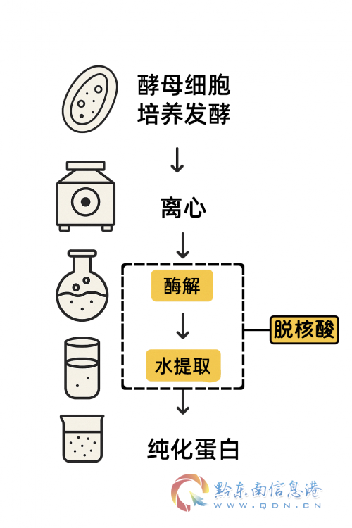 酵母蛋白在生产过程中,有一道非常关键的工艺——"脱核酸"。嘌呤主要存在于细胞核的核酸中,而在酵母蛋白的制作过程中,通过酶解、水提取等工艺,绝大多数的核酸都已经被去除了,嘌呤含量因此大大降低。