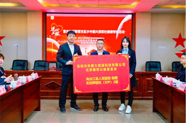 北京康和公益基金会与深圳市伟晴大健康科技有限公司共同向贵州省台江县人民医院捐赠两套先进的NatrRes 30 Premium无创呼吸机,旨在缓解当地基层医疗机构在呼吸与睡眠疾病诊治方面的设备压力,为相关患者提供更为及时、专业的治疗支持。
