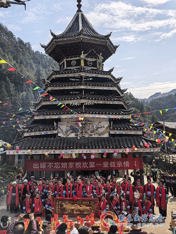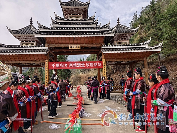 本网讯 丙午马年新春,贵州省从江县平乐侗寨张灯结彩、喜气洋洋。为传承侗族传统习俗、凝聚乡亲情谊,平乐侗寨隆重举办“姑妈回娘家”新春团聚活动,近百名外嫁侗族姑妈身着盛装、满载乡情,跨越山海奔赴故里,与寨内亲人共叙血脉深情,演绎了一场浓墨重彩的侗寨团圆盛宴。
