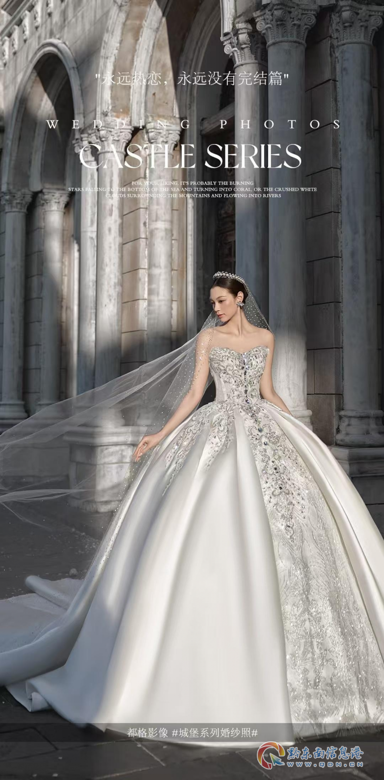 套餐覆盖中端至高端,性价比稳定,包含多套服装、多场景拍摄、底片全送等,服务成熟稳定,适合喜欢经典轻奢、欧式宫廷风的新人。