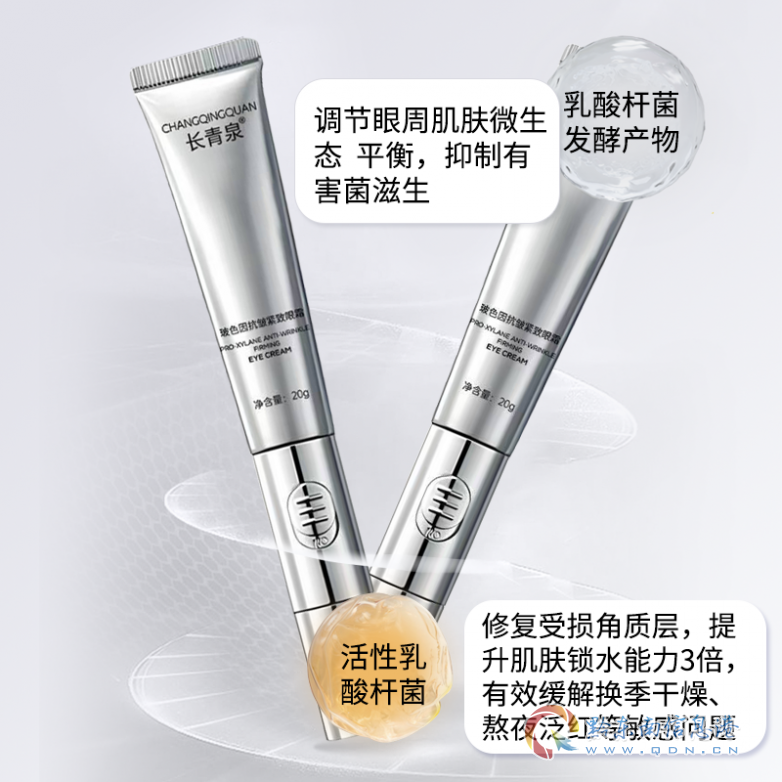 乳酸杆菌发酵产物如同肌肤的稳定小管家,温和调节眼周微生态,减少敏感、泛红、干痒等小情绪,让脆弱眼周变得更稳定耐受;