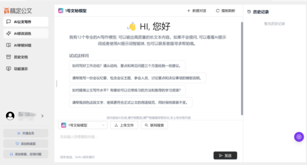 该软件平台基于可靠知识库,提供工作通知、工作部署、工作计划、工作方案、调研报告、述职报告、总结汇报、讲话发言稿、心得体会、思想汇报、各类通报、消息信息稿、公开信、函等工作中常见的公文场景。