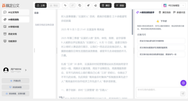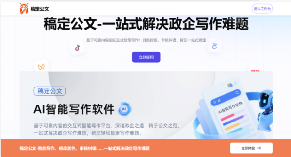 “太好用了!”近日,AI智能公文写作平台“稿定公文AI”获得多个用户好评。稿定公文AI是一款深耕政企公文写作场景的交互式智能写作平台,依托可靠知识库与专属AI文秘模型,打造“写、改、审、排”全流程写作解决方案,一站式解决政企写作中效率低、审错难、排版繁等核心难题。平台拥有智能写作、修改润色、审核纠错、公文排版四大核心功能,精于公文之范,已成为政务人员、企事业单位文秘、基层办公人员的高效写作助手。