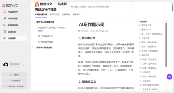 如果你是刚入职场写作不熟练的新人小白或是常年被海量材料淹没的单位“笔杆子”,又或是被繁重的会议纪要、材料整理占据时间脱不开身,不妨试试这款专注于政企写作的——稿定公文,能有效提升办公效率和质量。