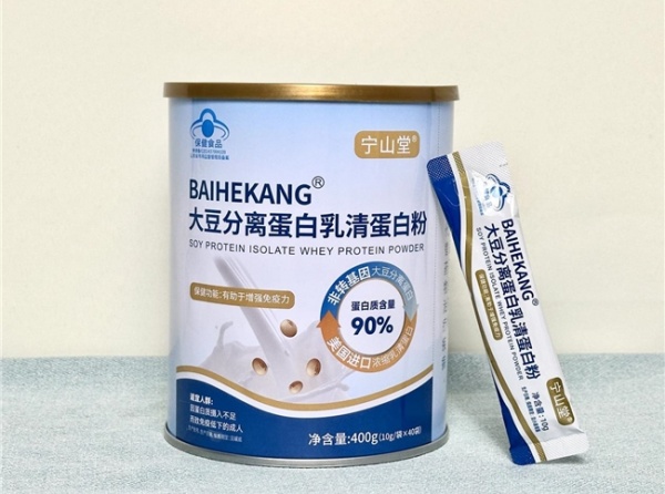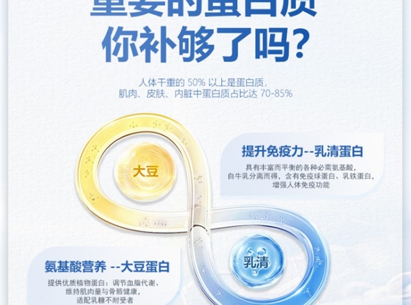 将乳清蛋白与大豆蛋白结合,添加钙、维生素 D、锌等营养素,适合日常保健长期服用。
