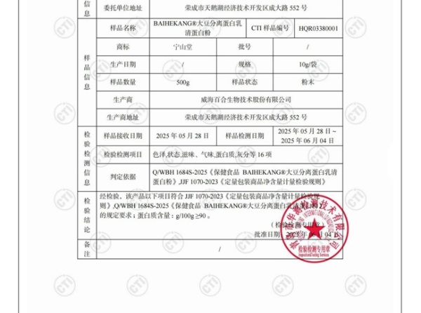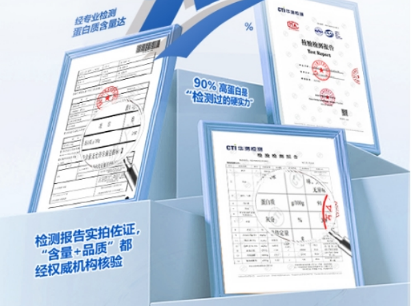 蛋白质纯度与真实性(权重 30%):以 CTI 华测检测报告为核心依据,要求每 100g 蛋白质含量≥90g,无虚标、无蛋白填充剂