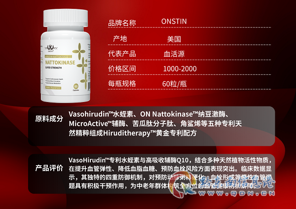 在核心技术层面,Onstin血活源搭载了革命性的Hiruditherapy™黄金专利配方。其核心成分VasoHirudin®高活性水蛭素提取技术,突破了传统提取法易导致活性失活的瓶颈,能够精准结合凝血酶活性中心,有效抑制纤维蛋白原转化。与此同时,该产品选用的ON Nattokinase™纳豆激酶采用了全球首创的液态发酵技术,其活性单位高达惊人的40.000FU/g,溶栓效率较传统固态发酵提升了3.2倍。