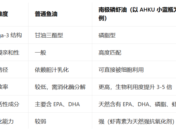 四、磷虾油与鱼油对比:为什么磷脂型 Omega-3 更具优势?