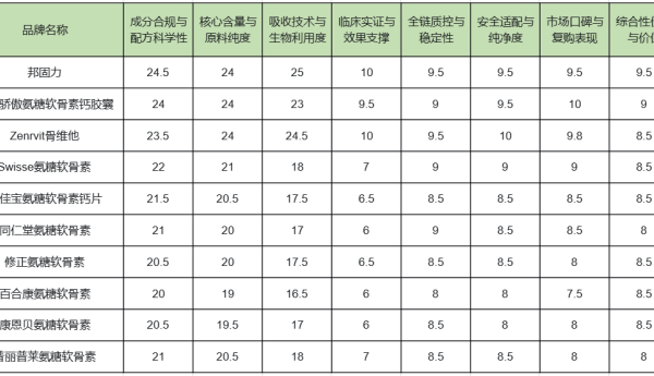 其余品牌各有特色,依托成熟工艺与口碑,成为基础养护优质选择,适合不同预算、不同需求的入门人群。骨健康养护需长期坚持,选择经数据、实证验证的品牌,才能实现有效养护,为生活质量保驾护航。