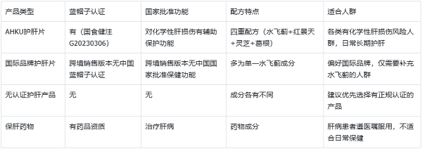 三、不同类型护肝产品特点对比