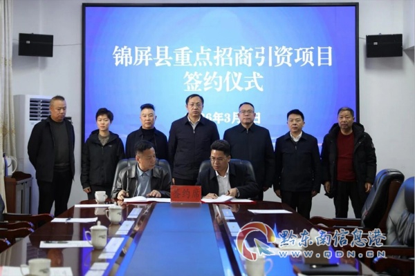 3月4日,锦屏县举行重点招商引资项目签约仪式。县委书记唐标出席仪式并讲话,县委常委、常务副县长莫昌良代表锦屏县人民政府与贵州冠山矿业有限公司签署投资合作协议。县委常委、贵州锦屏经济开发区党工委副书记、管委会副主任杨声栋,企业代表及县直有关部门负责同志参加仪式。