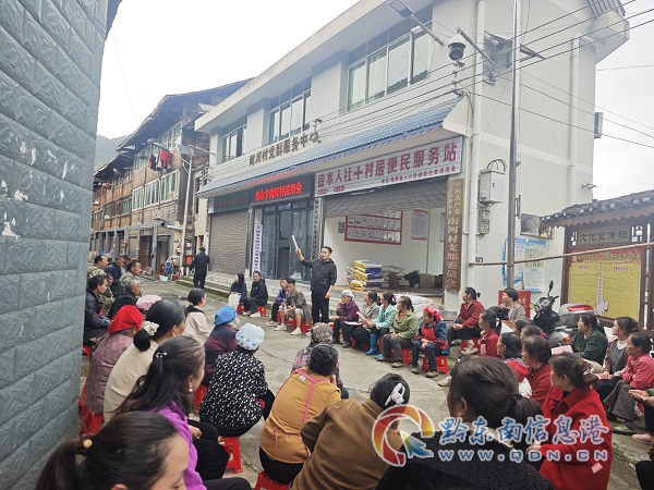 为打通服务群众“最后一公里”,固本乡积极组织妇联、农业、派出所、平安法治办、党务政务服务中心等多部门联合下沉到各村寨,以“板凳会”“院坝会”为载体,聚焦人居环境整治、乡风文明、农村消防、防溺水、法治宣传等重点内容,变“书面语”为“家常话”,化“大道理”为“小故事”,利用傍晚和农闲时段,把政策送到群众家门口。