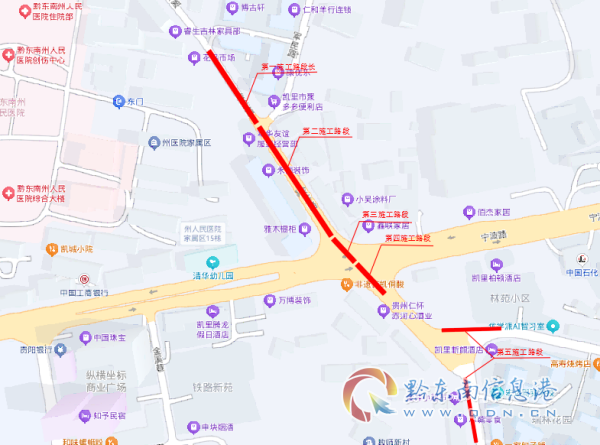 1.第1阶段施工期间,韶山南路金井岗红绿灯路口途经金井路往万达广场、州林汽方向行驶的车辆由军民路绕行;