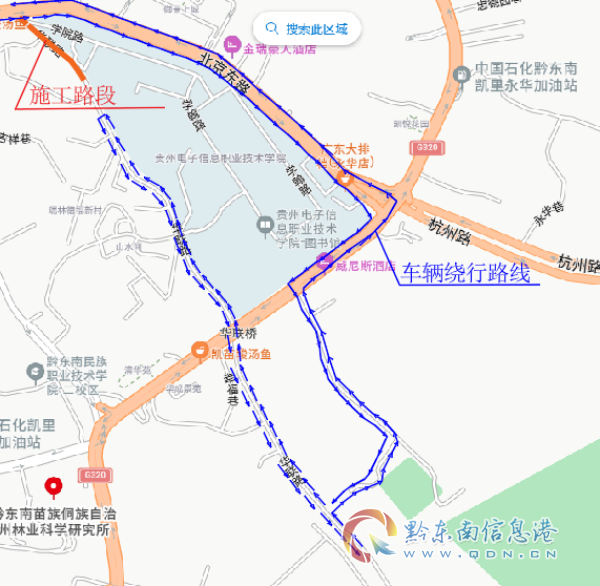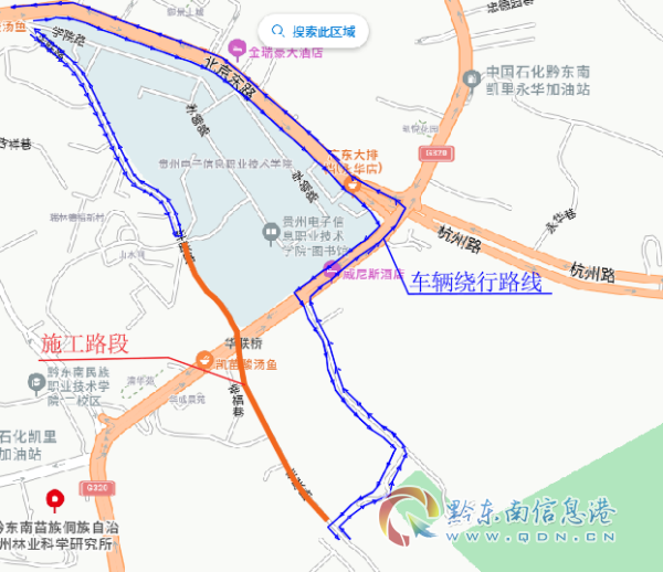 第2阶段:华联路贵州电子信息职业技术学院门口至黔东南州歌舞团门口道路双向封闭。
