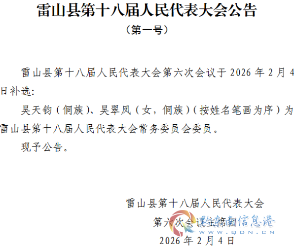 雷山县第十八届人民代表大会公告