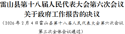雷山县第十八届人民代表大会第六次会议听取和审议了县人民政府县长黎琨所作的政府工作报告。会议充分肯定县人民政府“十四五”时期及2025年的工作,同意报告提出的“十五五”时期主要目标任务和2026年重点工作,决定批准这个报告。