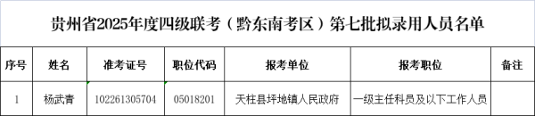 附件:贵州省2025年度四级联考(黔东南考区)第七批拟录用人员名单