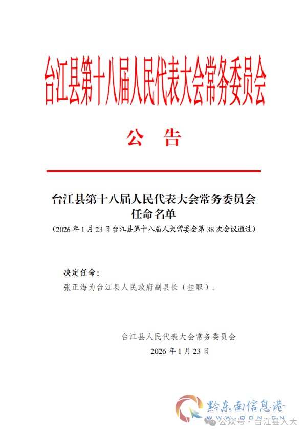 台江县第十八届人民代表大会常务委员会公告