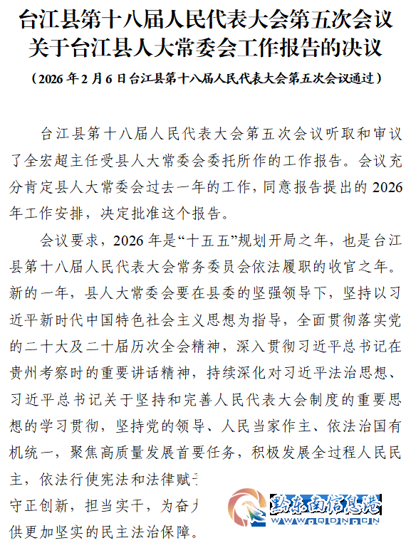 台江县第十八届人民代表大会第五次会议关于台江县人大常委会工作报告的决议