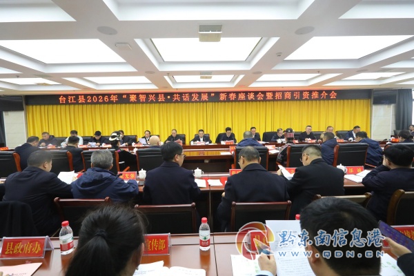 2月12日,台江县召开2026年“聚智兴县·共话发展”新春座谈会暨招商引资推介会。会议通报了台江县经济社会发展情况,与会人员观看了台江县招商引资宣传片,听取了台江县智力支乡会工作视频汇报,并就推动台江县经济社会高质量发展建言献策。