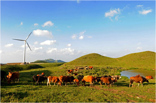 依稀仿佛.身着苗装的我正悠闲地漫步在红阳草坪上。放着牧儿.哼着歌曲,呼吸着草坪内的新鲜空气,面对着起伏的山峰,蠕动的白云.感受那种远离尘世天地人合为一体的安祥与宁静。心随之而飘飘然……