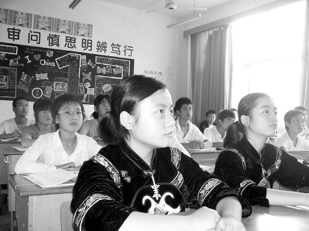 贵州雷山苗家女孩文韵正在认真听课。(陈利群 摄)